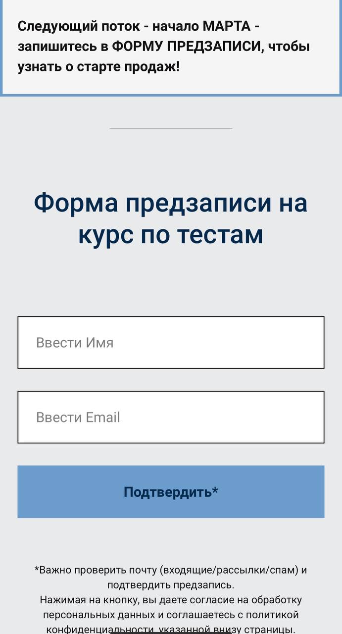 Кто планировал на следующий поток, предлагаю заполнить форму предзаписи на март, чтоб узнать о старте продаж.