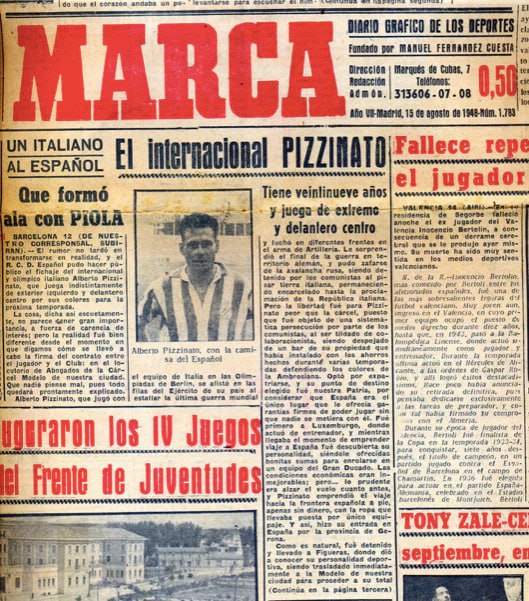 Тёплым августовским днём 1948 года на границе Испании и Франции появился бедно одетый мужчина без документов, денег и каких-либо вещей кроме тех, что были на нём. Пограничникам он представился как Альберто Пиццинато, 29-летний гражданин Италии. Рассказал, что был футболистом, выступал за сборную страны вместе с Сильвио Пиолой, был олимпийским чемпионом 1936 года и играл за клуб «Амброзиана», как именовали «Интер» в годы правления Муссолини.