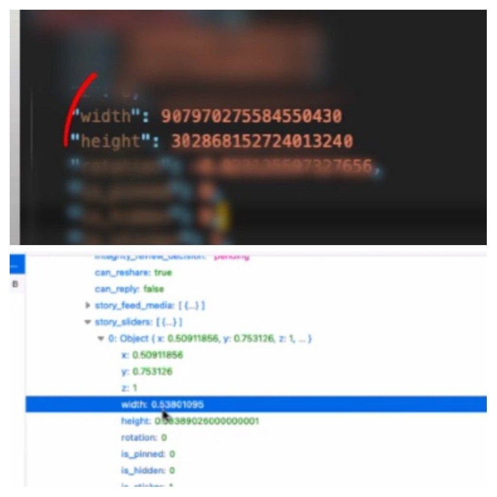 Так вот, как это работает: истории — это не просто картинка или видео, это достаточно сложная штука с кучей интерактивных элементов (всякие наклейки и т.д.) и накладываются они послойно, т.е. не модифицируя оригинальное изображение, фон и рендерятся на клиенте. Именно на это и нацелена атака: дело в том, что размеры и координаты этих наклеек указаны в относительных единицах к размеру всего фото/видео (
