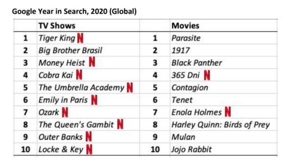 N.B. 9 из 10 самых популярных сериалов по запросам Google — сериалы Netflix. В первой десятке фильмов — еще две картины видеосервиса.