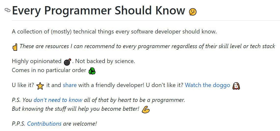 Колекція здебільшого технічних матеріалів (книжки, статті), які кожен розробник мусить знати. Незалежно від рівня навичок і технологічного стеку.