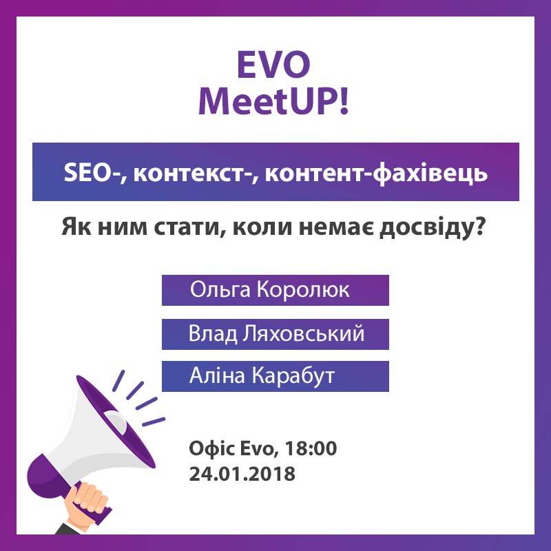 На першому EVO MeetUp 2018 року ви дізнаєтеся: