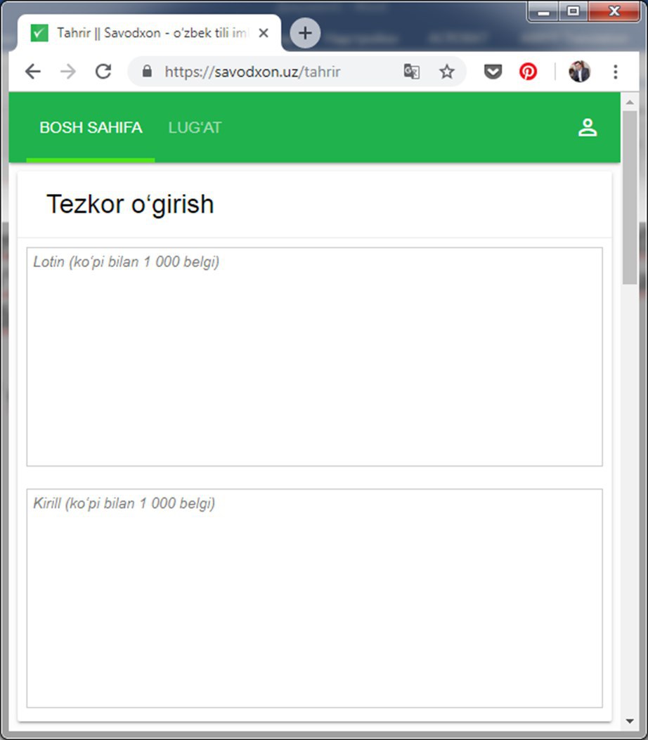 Savodxon dasturi oʻzbek tili imlo qoidalarini ommalashtirish va savodxonlikni targʻib qilish uchun ishlab chiqilgan dasturiy vositadir. Uning yordamida siz matndagi imlo xatolarini aniqlashingiz va kontentingiz sifatini oshirishingiz mumkin.