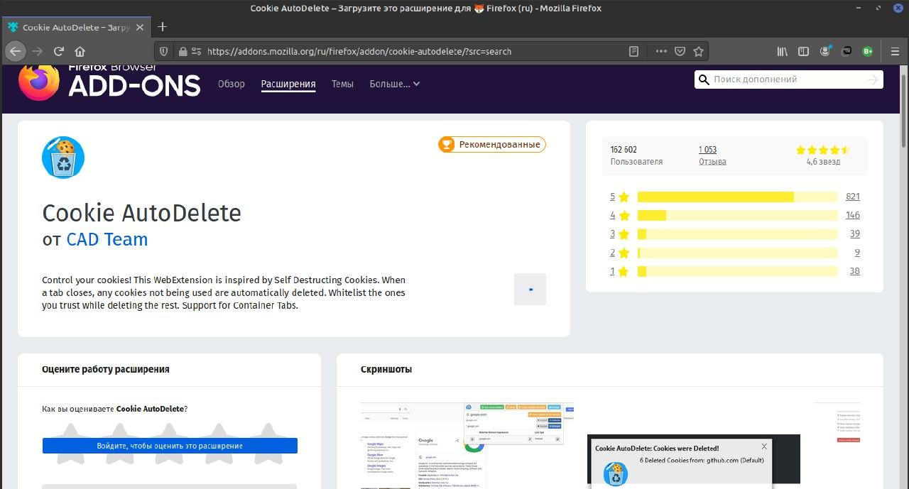 “Cookie AutoDelete” kengaytmasi foydalanuvchi xavfsizligini ta’minlash uchun maxsus yaratilgan. Asosiy imkoniyatlari: