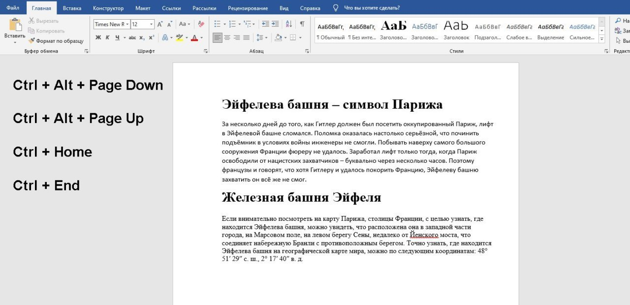 Hujjat sahifalarining boshida mavzularni belgilab ketgansiz va ular bo‘ylab tezkor o‘tishingiz kerak deylik, yoki hujjatning o‘rtasidan turib, uning boshiga yoki oxiriga tezkor o‘tish lozim, sichqoncha bilan bu jarayon biroz ko‘proq vaqt olishi aniq. 😣