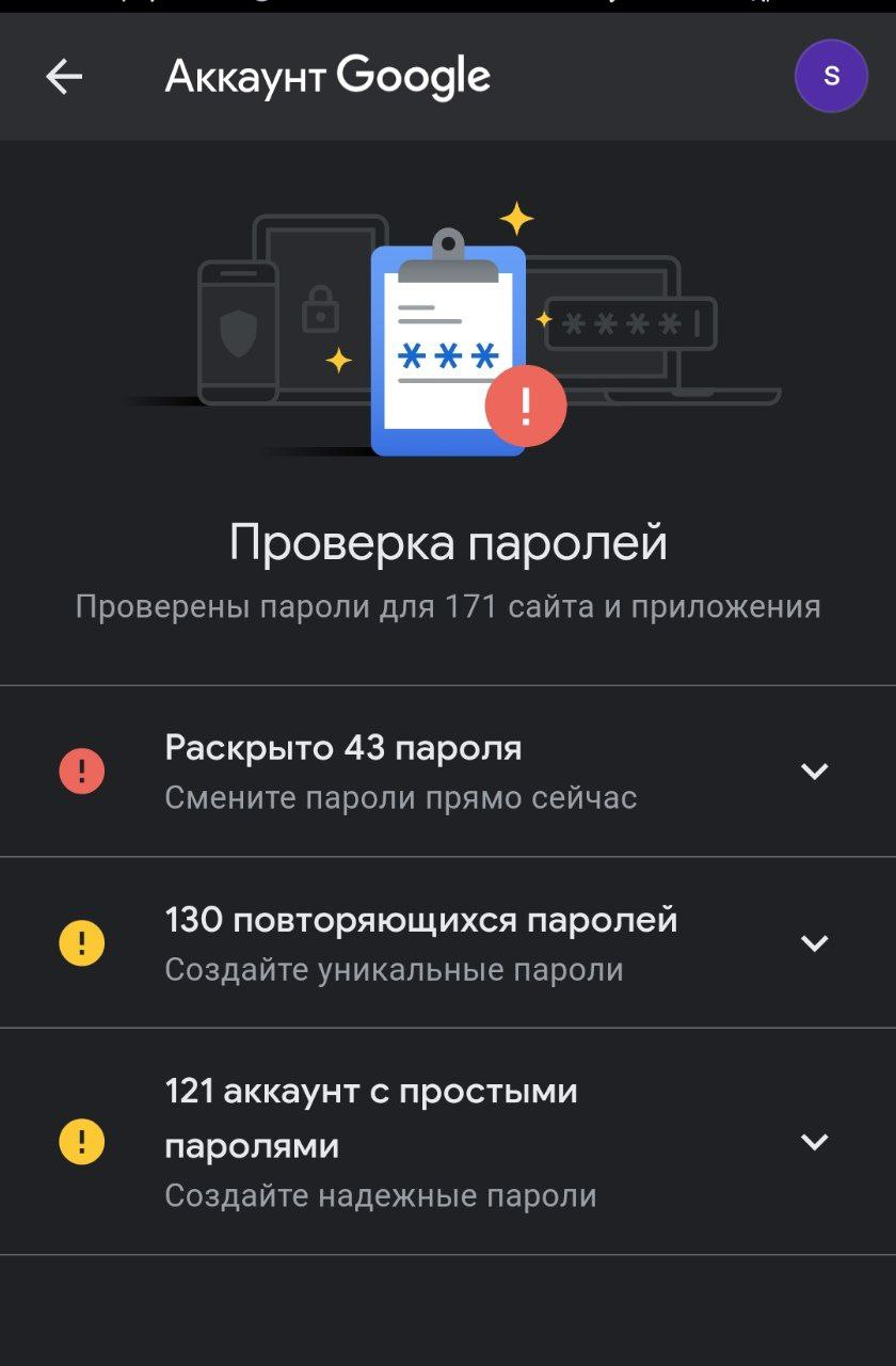 Darvoqe, agar siz Google Chrome'ning parollar saqlash imkoniyatidan foydalansangiz, u holda Google'da parollaringiz xavfsizligini tekshiruvchi ajoyib vosita mavjud. Uni brauzer sozlamalaridagi Защита аккаунта bo‘limidan topish mumkin.