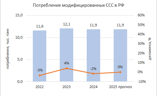 По итогам года снижение объемов потребления ССС по сравнению с 2023 г. составило -1,6%.