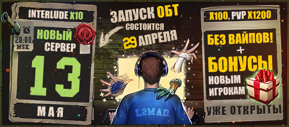 💥 L2MAD.NET Interlude x10 - Открытие 13 Мая! Высокий онлайн, множество кланов, большое обновление!