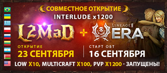💥 L2MAD.NET Interlude x1200 - Открытие 23 Сентября, запуск ОБТ сегодня в 20:00 МСК! Без лагов, вайпов и сторонних программ!