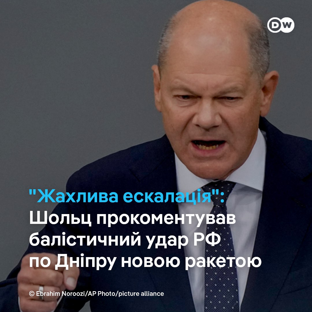 Олаф Шольц назвав застосування Росією ракети середньої дальності для удару по Дніпру "жахливою ескалацією"