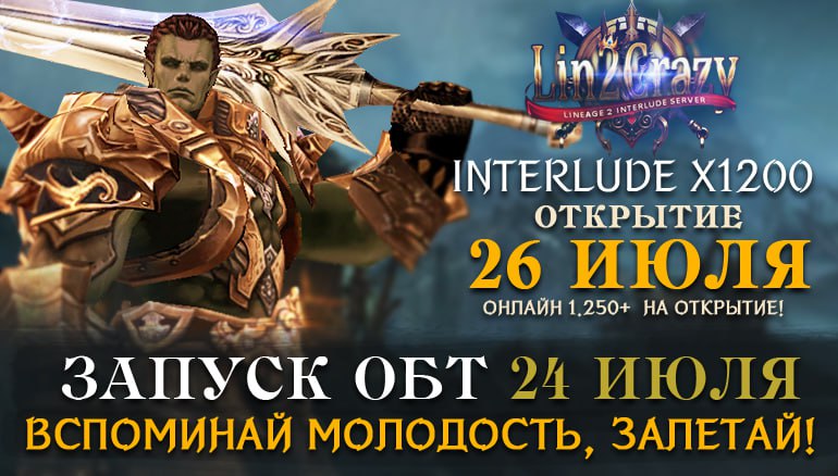 🧨 ОБТ уже сегодня в 20:00 - Lin2Crazy.Com !