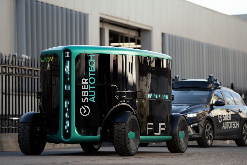 SberAutoTech, созданная «Сбером» в 2020 году, представила прототип полностью автономного электрического транспорта собственной разработки под названием ФЛИП. Автомобиль имеет максимальный, пятый уровень автономности по международной классификации.