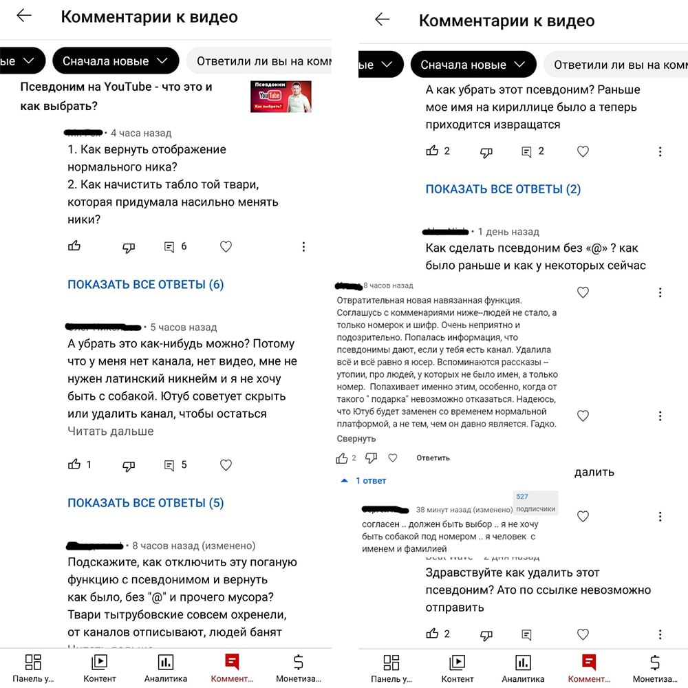 Пользователям похоже не зашла новая функция YouTube - «Псевдонимы». Вижу это по комментариям под своим видео.