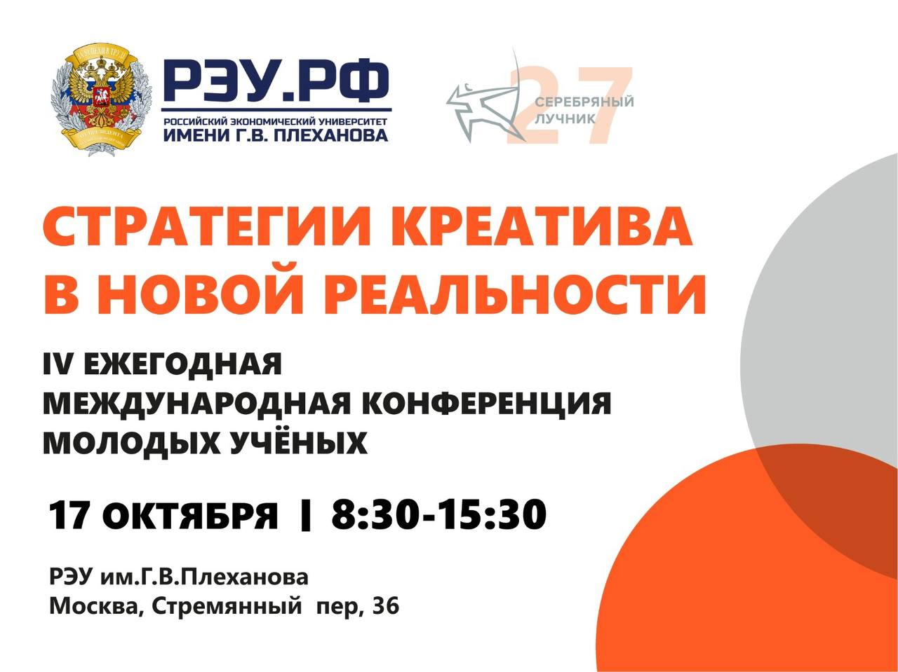 17 октября в РЭУ им. Г.В. Плеханова прошла традиционная IV ежегодная кейс-конференция студентов, аспирантов и молодых ученых «Стратегическая коммуникация в новой реальности: драйверы и тренды», на которой студенты университета и других российских вузов презентуют свои реализованные цифровые проекты. Темой кейс-конференции в 2023 году стали стратегии цифрового креатива. Авторы презентовали более 20 проектов на русском и английском языках. Всего в конференции приняли участие более двухсот студентов. Партнерами конференции по традиции выступили Национальная премия в области развития общественных связей «Серебряный Лучник» и Европейский институт связей с общественностью.