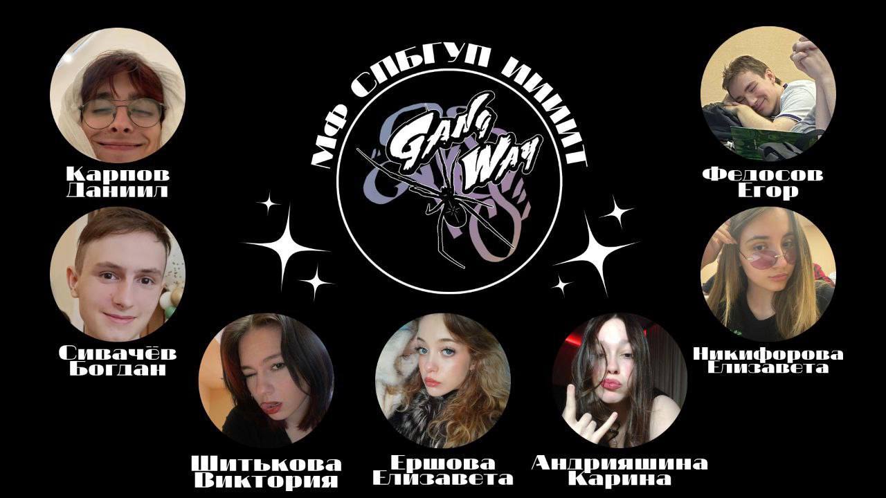 Привет! Мы — команда "Gang Way" из ИИиИТ! Эй, мы действительно крутые! Когда собираемся вместе, в воздухе ощущается энергия настоящего вдохновения. Каждый из нас — это уникальный ингредиент в рецепте успеха, и вместе мы создаём нечто потрясающее!