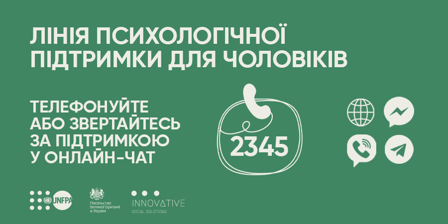 У 2022 році UNFPA запустили перший сервіс психологічної підтримки для чоловіків, де можна отримати фахову психологічну допомогу анонімно, безкоштовно і цілодобово.