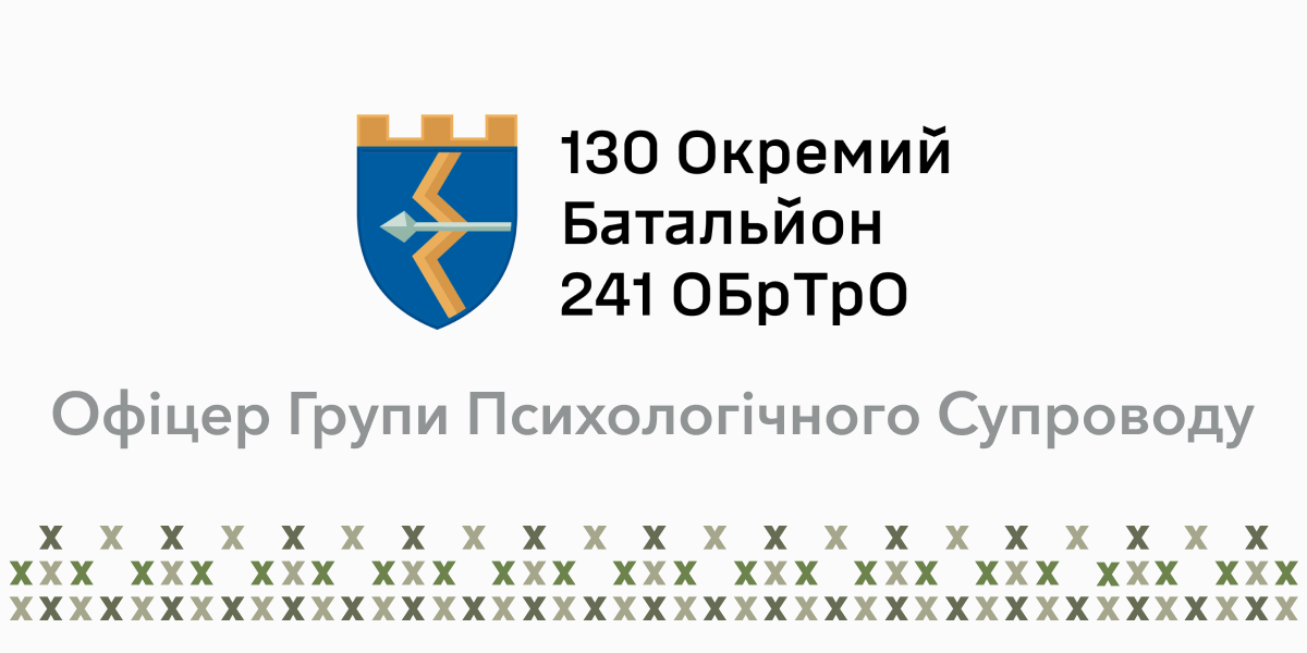 Огляд: 130-тий окремий батальйон 241-шої окремої бригади Сил територіальної оборони Збройних сил України у складі Регіонального управління «Північ» брав участь у звільненні населених пунктів Київської, Харківської, Луганської та Донецької областей та надалі продовжує виконувати бойові завдання і звільняти територію України від ворога. Вакансія передбачає службу на посаді офіцера групи психологічного супроводу та відновлення в 130-му окремому батальйоні 241 ОБрТрО.