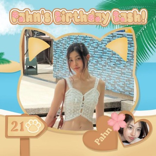 XoXo with juicy drinks, salty winds, sun hats, surf boards, and tropical tunes. (&.) Here’s where birthdays feel like paradise, and Pahn Pathitta becomes the queen of this sunny scene. We’re rolling into the party with beach-pop beats and flip-flop energy. A summer glow, a birthday flow — growing into sunshine and confidence with every candle lit.