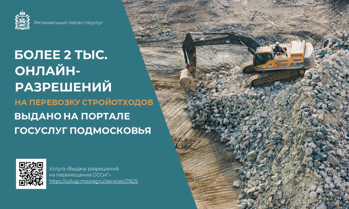 ✅ Более 2 тысяч цифровых разрешений на перемещение стройотходов выдано на портале госуслуг Подмосковья
