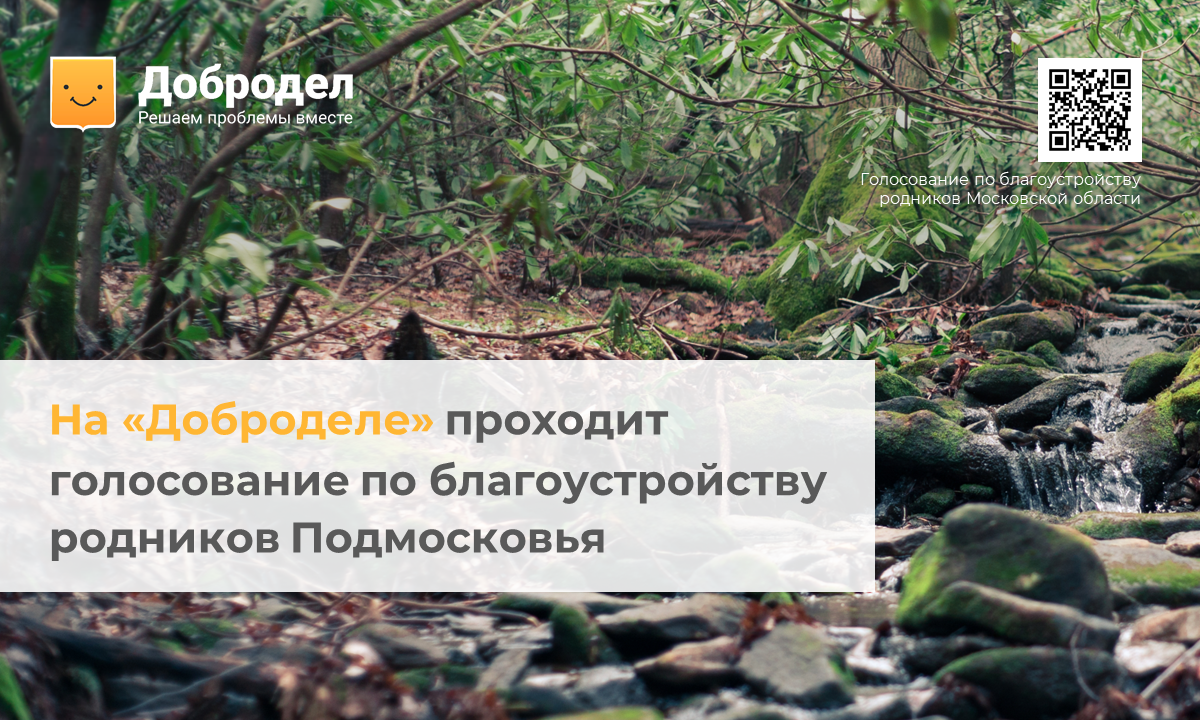 ✅ Для этого поучаствуйте в новом голосовании на портале «Добродел» по выбору родников для благоустройства в Московской области. Голосование продлится с 15 марта по 15 апреля.