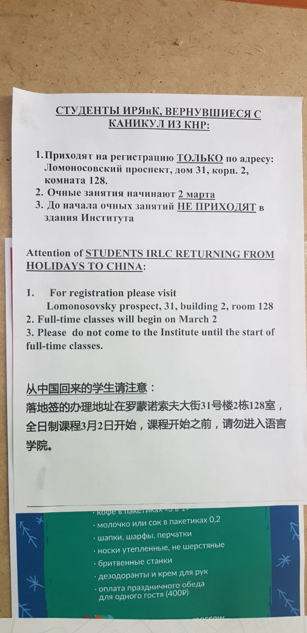 Редакция «Первого университетского» пообщалась с Шихао — студентом МГУ из Китая, неделю назад вернувшимся в Россию. Мы узнали, что нужно пройти китайским студентам перед тем, как попасть в город и заселиться в общежитие.