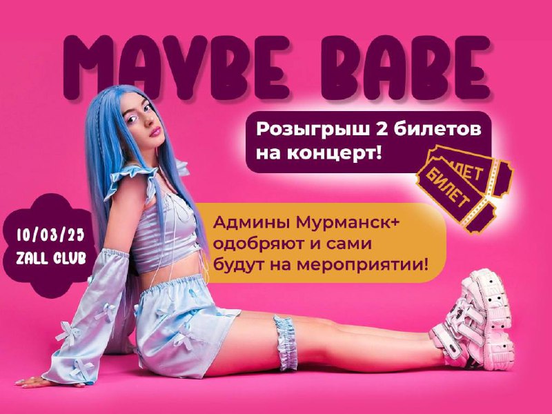 Розыгрыш двух билетов на концерт Мэйби Бэйби, который пройдёт совсем скоро!!