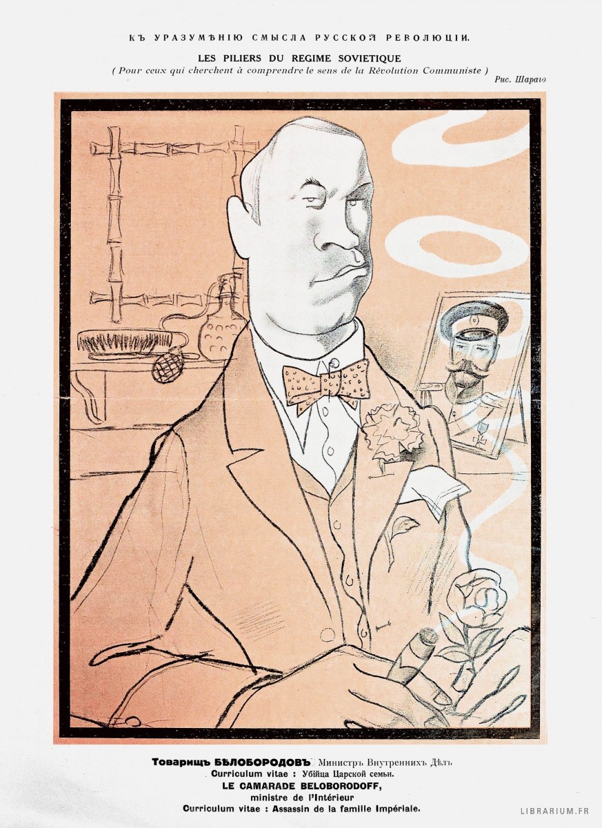 В советской России Анненков написал выдающиеся портреты Ленина, Троцкого, Каменева и др. большевистских вождей, воспроизводившиеся на почтовых марках. В эмиграции он создал (по-своему не менее блестящую) серию карикатур под общим названием "К уразумению смысла русской революции". Одну из них мы предлагаем вашему вниманию.