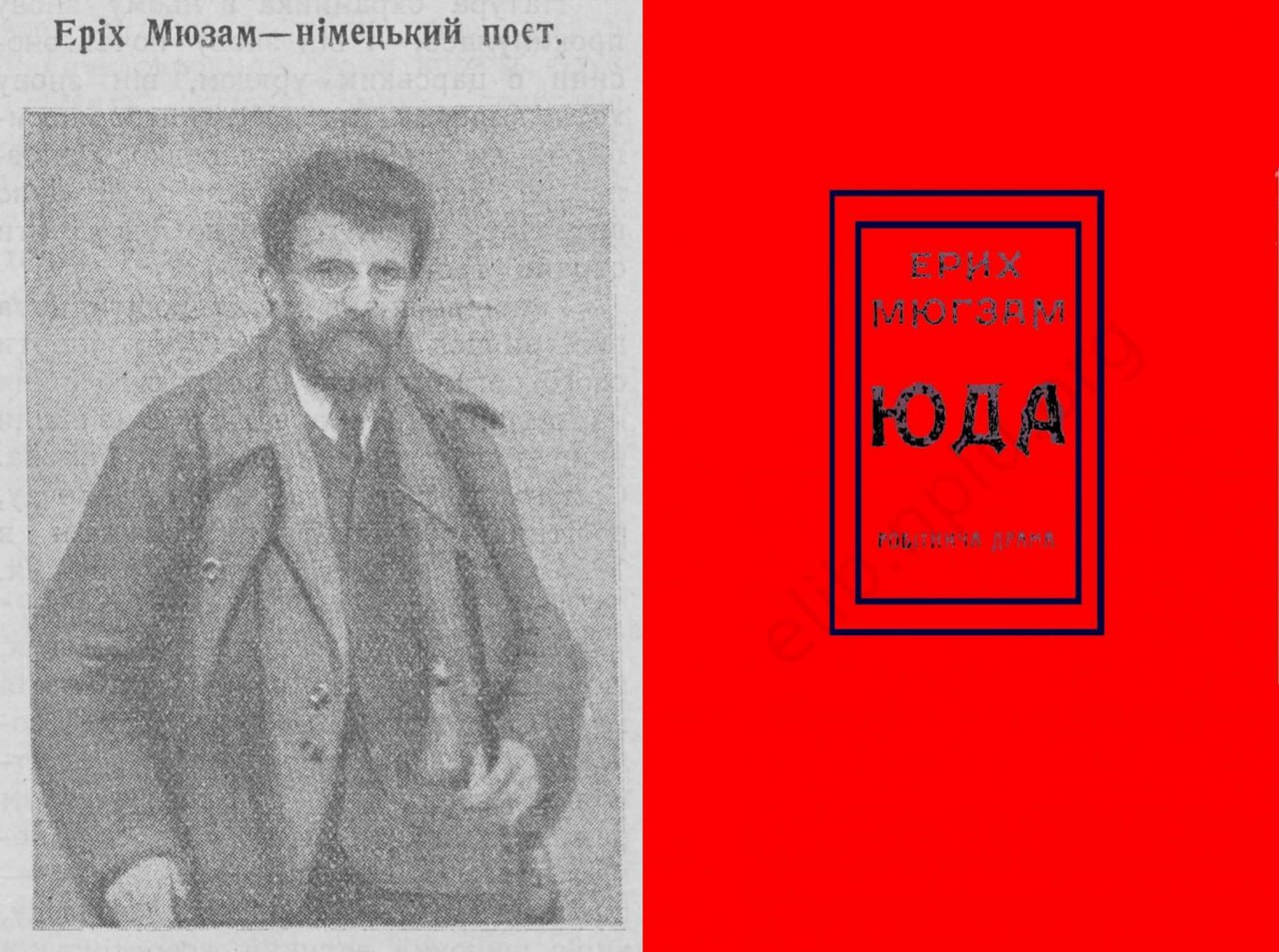 Звичайно, Мюзам був постійним героєм радянської пропаганди. У тюрмі він написав п’єсу «Юда» (1920), яка вже 1923-го вийшла українською мовою в перекладі Майка Йогансена. А вже за рік Мюзама звільнили за амністією. За цією самою амністією на волю вийшов організатор «пивного путчу» Адольф Гітлер.