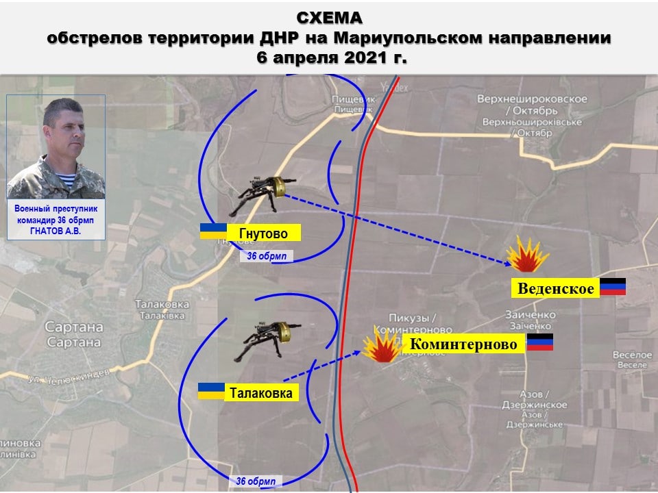 ♦️На Мариупольском направлении, боевики из 36-й бригады морской пехоты обстреляли н.п. КОМИНТЕРНОВО и ВЕДЕНСКОЕ из автоматических гранатометов.
