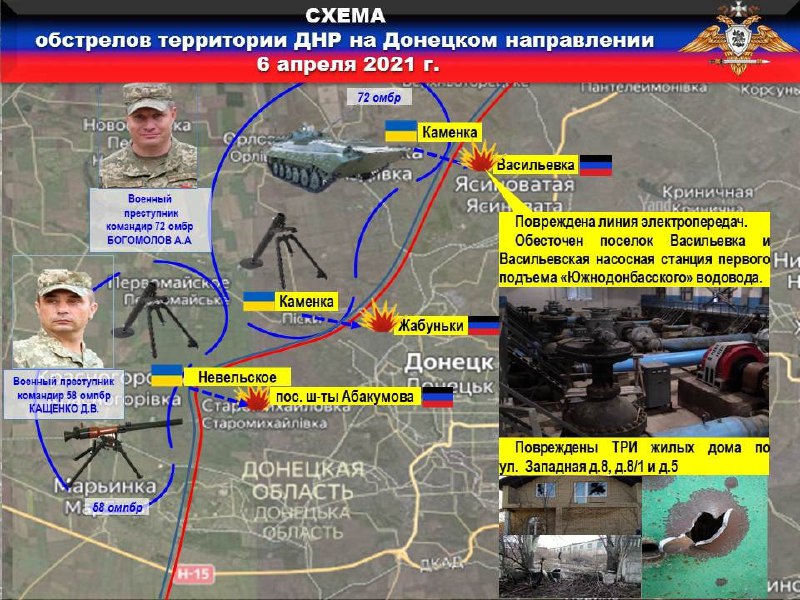 Так, боевики 72-й омбр ВФУ, по личному приказу военного преступника БОГОМОЛОВА, с окраины н.п. КАМЕНКА открыли огонь из вооружения БМП по н.п. ВАСИЛЬЕВКА, в результате чего получили повреждения ТРИ жилых домостроения по адресам ул. Западная, д. 8, 8/1, 5, а также повреждена линия электропередач, обеспечивающая электроснабжение поселка и Васильевской насосной станции.