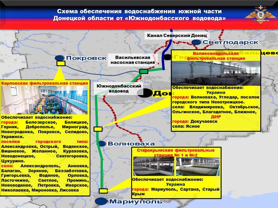 ♦️Кроме того, в результате повреждения ЛЭП, обесточена Васильевская насосная станция первого подъема Южнодонбасского водовода, что ставит под угрозу водоснабжение пяти фильтровальных станций Донбасса по обе стороны линии соприкосновения, обеспечивающих водой более 40 населенных пунктов с населением в 1,8 миллиона человек.