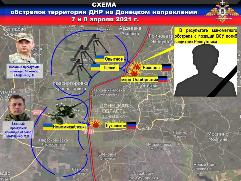 Кроме этого, военные преступники из 58-й омпбр ДВАЖДЫ открывали огонь со своих позиций в районе н.п. ПЕСКИ по территории нашей Республики. Обстрелам с применением 120-мм минометов подвергся н.п. ЖАБУНЬКИ, а из гранатометов различных типов обстрелян район н.п. ВЕСЕЛОЕ.