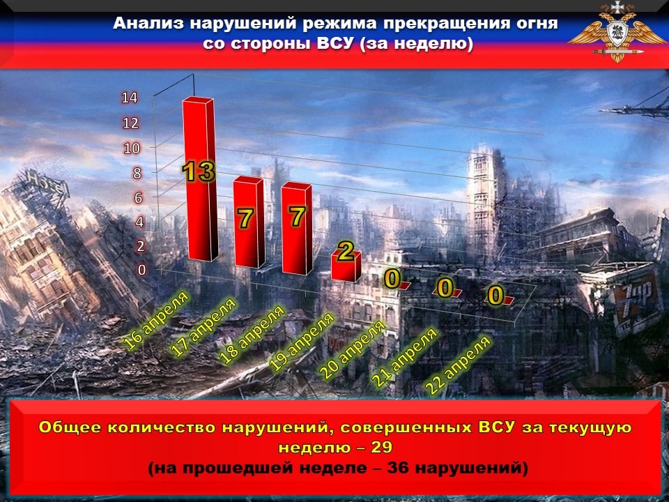 💥За прошедшие сутки с 17 на 18 апреля противник совершил СЕМЬ огневых провокаций, в нарушение ВТОРОГО пункта комплекса дополнительных мер по усилению и контролю действующего режима прекращения огня.