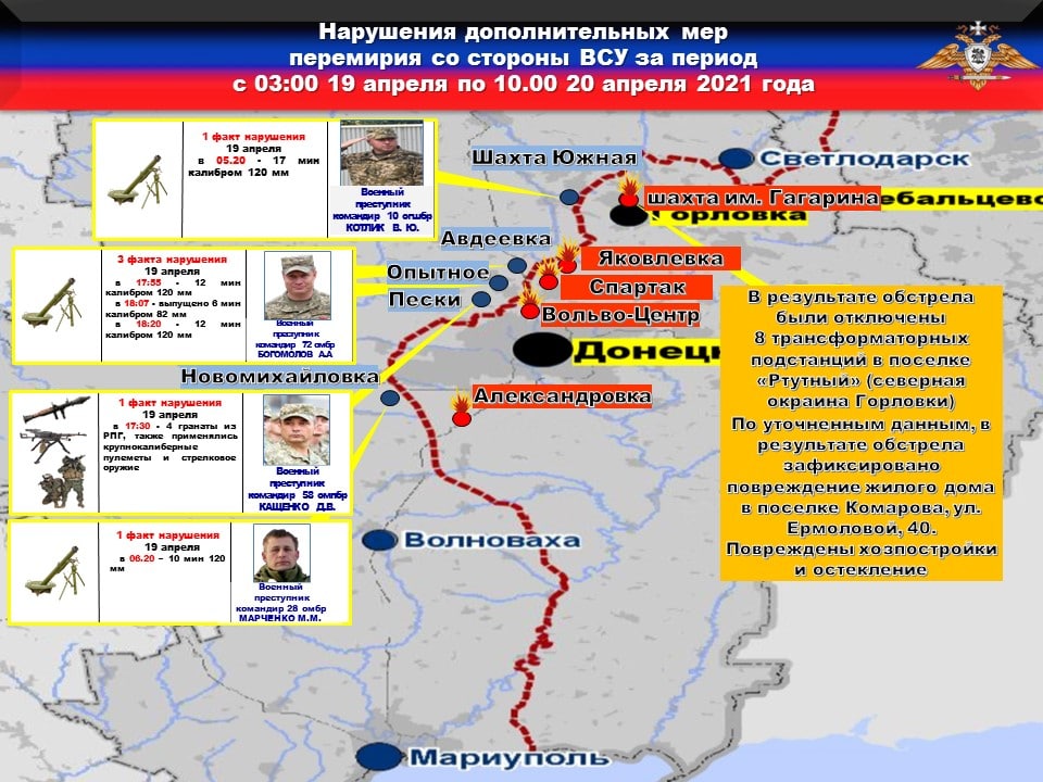 💥За прошедшие сутки с 18 на 19 апреля зафиксировано СЕМЬ нарушений режима прекращения огня со стороны украинских боевиков.
