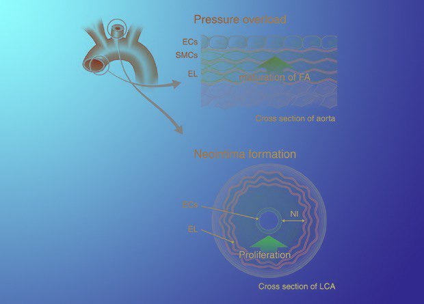 Стенки кровеносных сосудов могут растягиваться и сжиматься, так как в них есть гладкомышечные клетки. В норме это позволяет им реагировать на повышенное давление крови. Японские ученые выяснили, что именно запускает реакцию на гипертензию — белок тромбоспондин-1. Он путешествует из гладкомышечных клеток в окружающий их внеклеточный матрикс и обратно, и итог этого путешествия — «укрепление» стенок сосудов в ответ на высокое давление