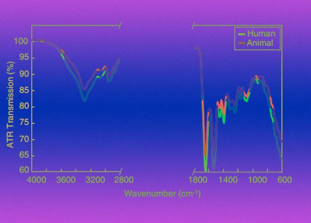 В фильмах часто показывают, что судмедэксперты анализируют кровь за считанные секунды и выдают информацию вплоть до завтрака подозреваемого. В реальности это не так: анализ крови пока что занимает немало времени, а потому ученые разрабатывают методы для его ускорения и повышения точности. Один из вопросов, волнующих криминалистов, — а человеческая ли кровь. Американские химики сняли ИК-Фурье спектры крови человека и одиннадцати видов животных и построили модель бинарной классификации, с помощью которой с точностью в 99,6 процентов они смогут дать верный ответ