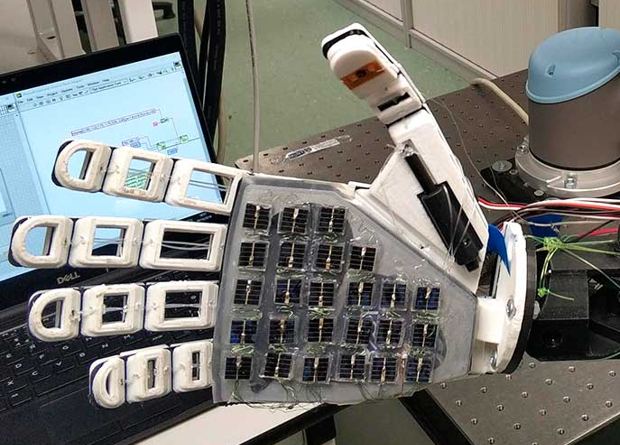 Британские инженеры придумали необычный метод, позволяющий роборукам определять прикосновение к предметам. Они установили на ладонь руки 25 небольших солнечных панелей и инфракрасные излучатели. Это позволяет определять приближение и контакт с предметами по анализу изменения выработки энергии на солнечных панелях