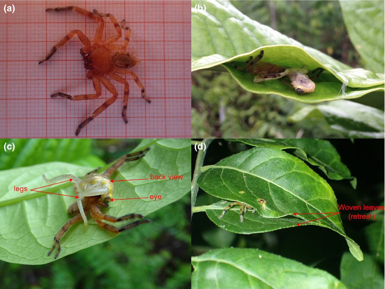 Многие пауки при поимке добычи полагаются на ловчие сети, «сачки» из паутины и другие приспособления. А пауки-охотники с северо-востока Мадагаскара, возможно, используют для ловли лягушек специальные ловушки, сделанные из пары скрепленных паутиной листьев. В жаркие дни амфибии пытаются спрятаться в их тени, спасаясь от лучей солнца, и становятся жертвами затаившихся внутри пауков. Впрочем, пока это лишь гипотеза: хотя исследователи нашли несколько предполагаемых ловушек с пауками внутри (одного из них застали за поеданием лягушки), непосредственно процесс охоты увидеть пока не удалось