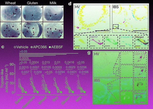 Многие люди после еды регулярно страдают от сильных болей в животе, которые являются главным симптомом синдрома воспаленного кишечника. Но что заставляет живот болеть у десятой части всей популяции? Биологи из Левена исследовали воспаление кишечника на мышах и людях и выяснили, что боли вызывает избыточная работа тучных клеток и повышенное воспаление в ответ на обычную еду — глютен, пшеницу, сою или молоко