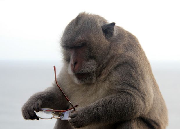 У макаков-крабоедов, проживающих на территории балийского храма Улувату, довольно скандальная репутация: они постоянно воруют личные вещи туристов, а затем вымогают еду в обмен на украденное. Как выяснили канадские ученые, такой бартер у макак довольно хорошо налажен. В частности, искусно воровать они учатся с возрастом (самые взрослые особи воруют успешнее всего), а не очень ценным шляпам и чехлам от камер предпочитают гаджеты и очки, за которые туристы дают больше еды