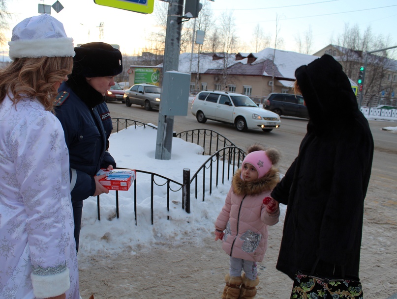Первый рабочий день, после новогодних праздников, стал неожиданно приятным для родителей и воспитанников детского сада 31 города Нижневартовска. Юные инспекторы движения детского сада вместе с Дедом Морозом и Снегурочкой, напоминали всем участникам дорожного движения о необходимости соблюдения правил дорожного движения. А для того чтобы взрослые не забыли полученные наставления, ребята подготовили памятки для участников дорожного движения, в которых содержалась эта важная информация, которая обеспечит безопасность. После проведённого мероприятия в фойе детского сада ребята отряда ЮИД направились по группам, где напомнили юным участникам дорожного движения о ПДД, показали агитбригаду, вручали тематические памятки.