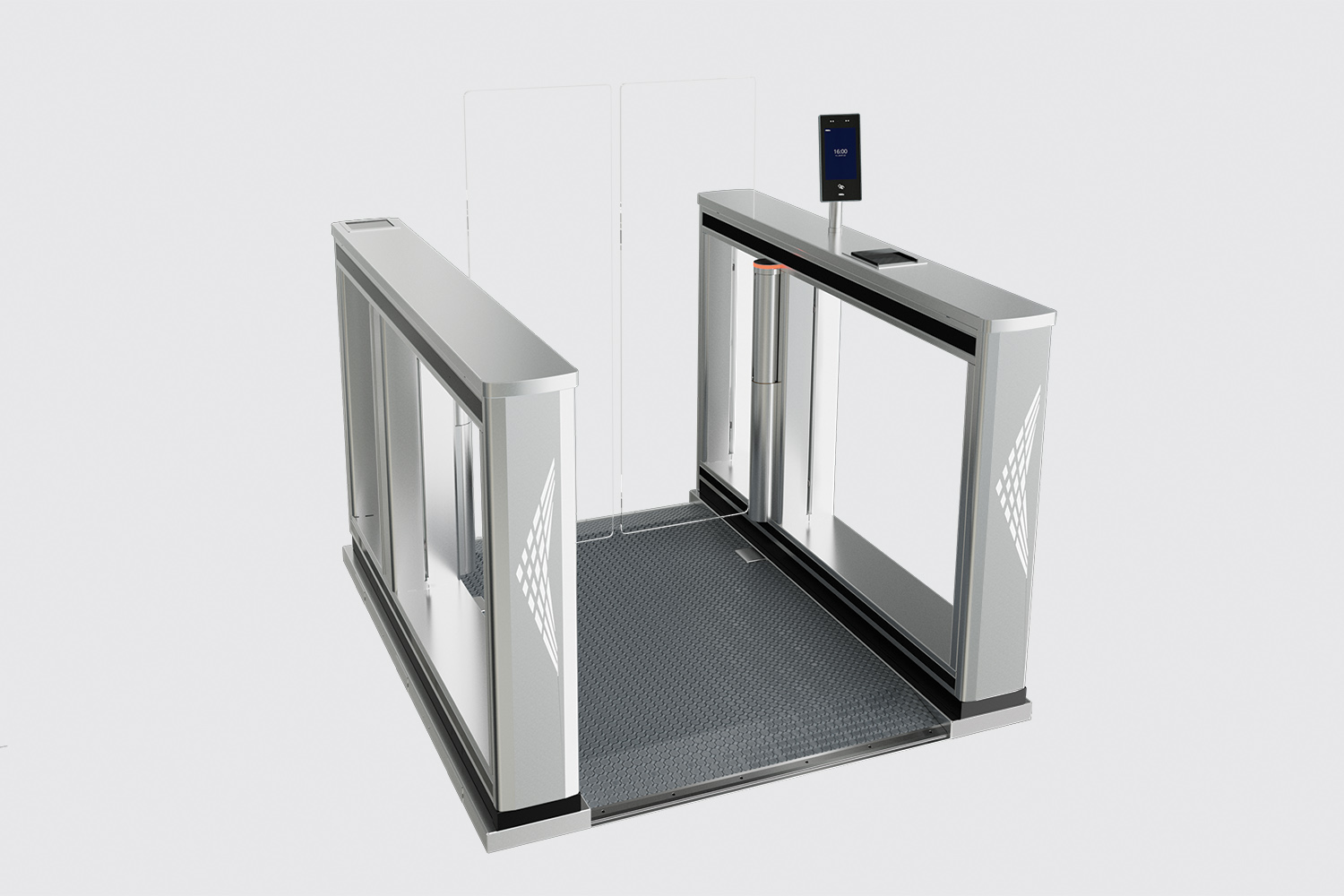 Среди преимуществ скоростного прохода – увеличенная зона детекции для фиксации несанкционированной попытки доступа, легкий доступ к периферийным устройствам для монтажа и обслуживания за счет откидывания верхней крышки, возможность установки терминалов распознавания лиц, считывателей, сканеров посадочных талонов и паспортов, наличие кнопки аварийного открытия створок для каждого прохода.