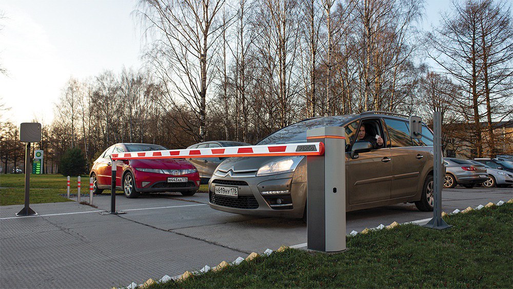По периметру территории устанавливается ограждение, на въезде – шлагбаум. Доступ осуществляется по идентификаторам, в роли которых могут выступать карты доступа, брелоки, смартфоны с установленным мобильным приложением, для проезда через шлагбаум – транспондеры. Доступ автомобилей также может осуществляться по распознаванию номеров. Шлагбаум работает совместно с контроллером и считывателями, имеющими радиус действия сигнала до 1 метра, что позволяет водителю не покидать автомобиль при предъявлении пропуска. Для использования в подземном паркинге шлагбаум может комплектоваться складной стрелой. Безопасность автомобиля обеспечивают сигнальная индикация и фотоэлемент.