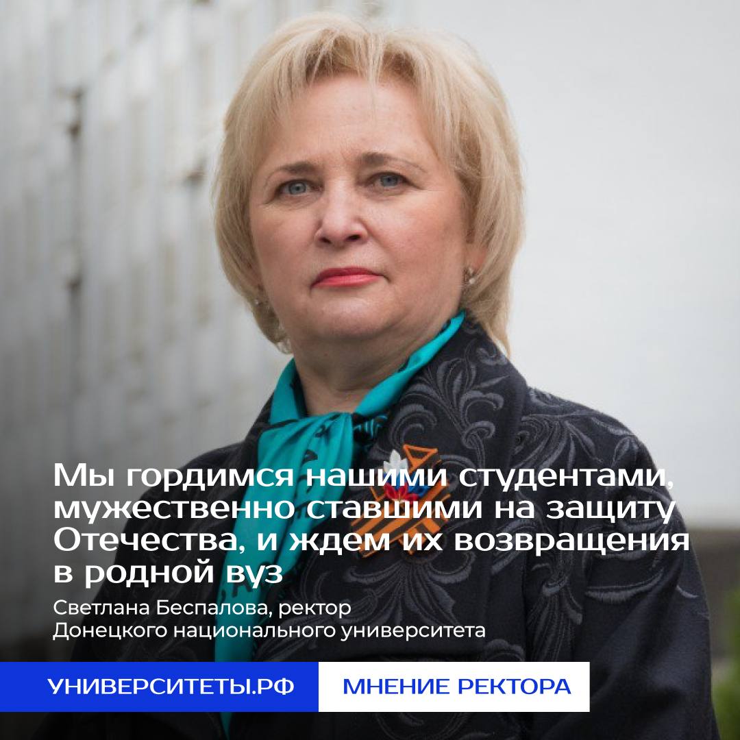«В Донецкой Народной Республике к началу Специальной военной операции по защите ДНР и ЛНР была проведена всеобщая мобилизация мужского населения, в ходе которой на воинскую службу были призваны студенты высших учебных заведений, в том числе и Донецкого национального университета. Этого требовала обострившаяся до предела военная обстановка.