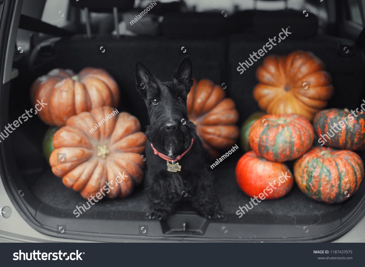 Давненько искали скотчтерьера в багажнике машины полном тыкв? Держите.