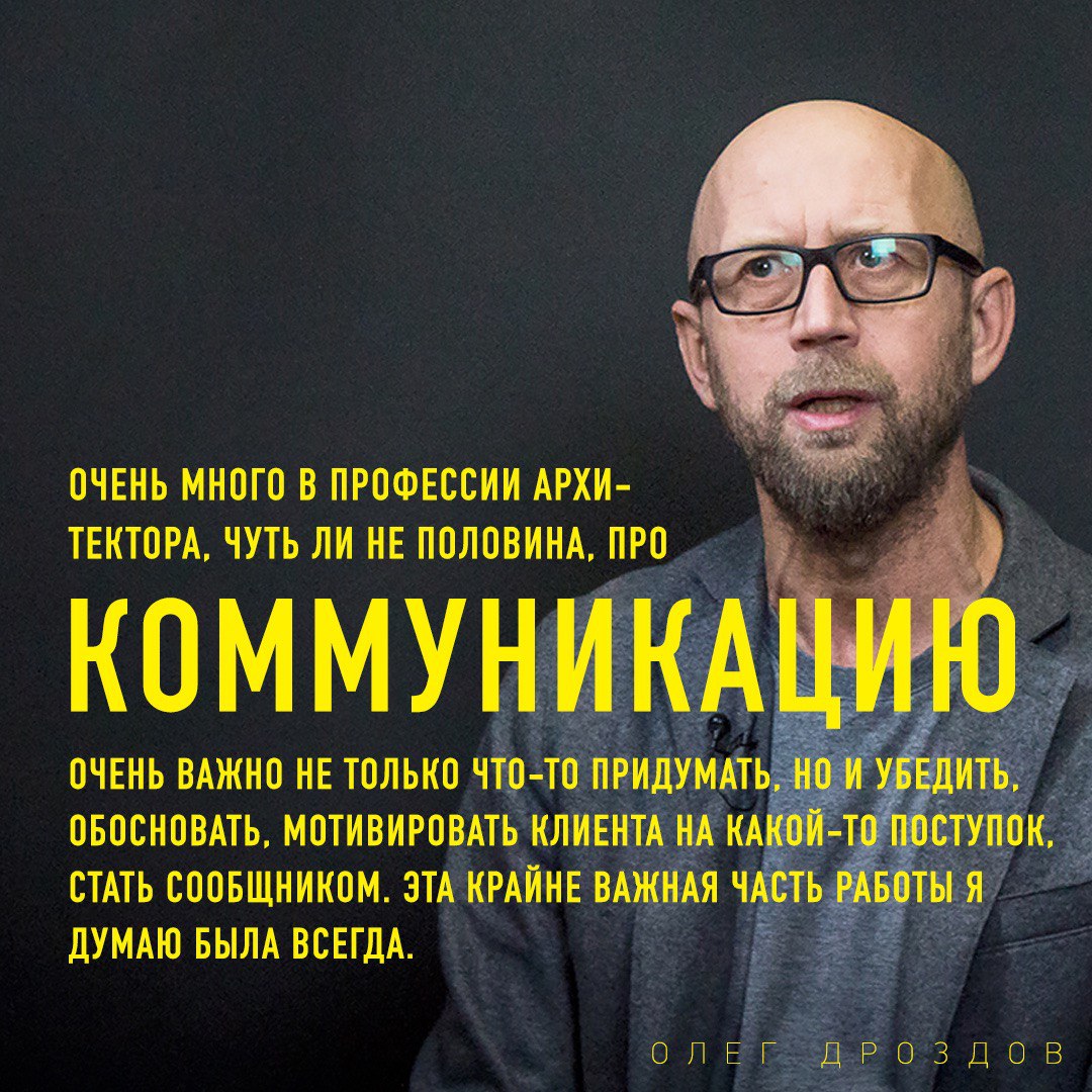 Самая ценная мысль с лекции одного из лучших архитекторов Украины, Олега Дроздова. Замените слово «архитектора» на любую другую профессию и смысл останется тот же.