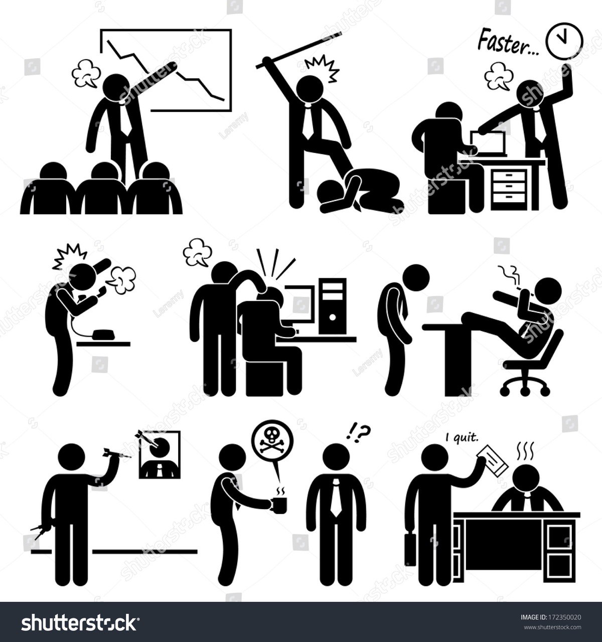 Angry Boss Abusing Employee Stick Figure Pictogram Icon
