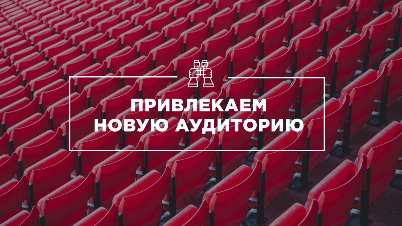 В качестве вижуала отлично подходят пустые трибуны Энфилда. Мол надо что-то придумать, чтобы заполнить места. Добавляем текст и ассоциативную иконку. И чтобы они более контрастно смотрелись на фоне картинки делаем следущие действия: