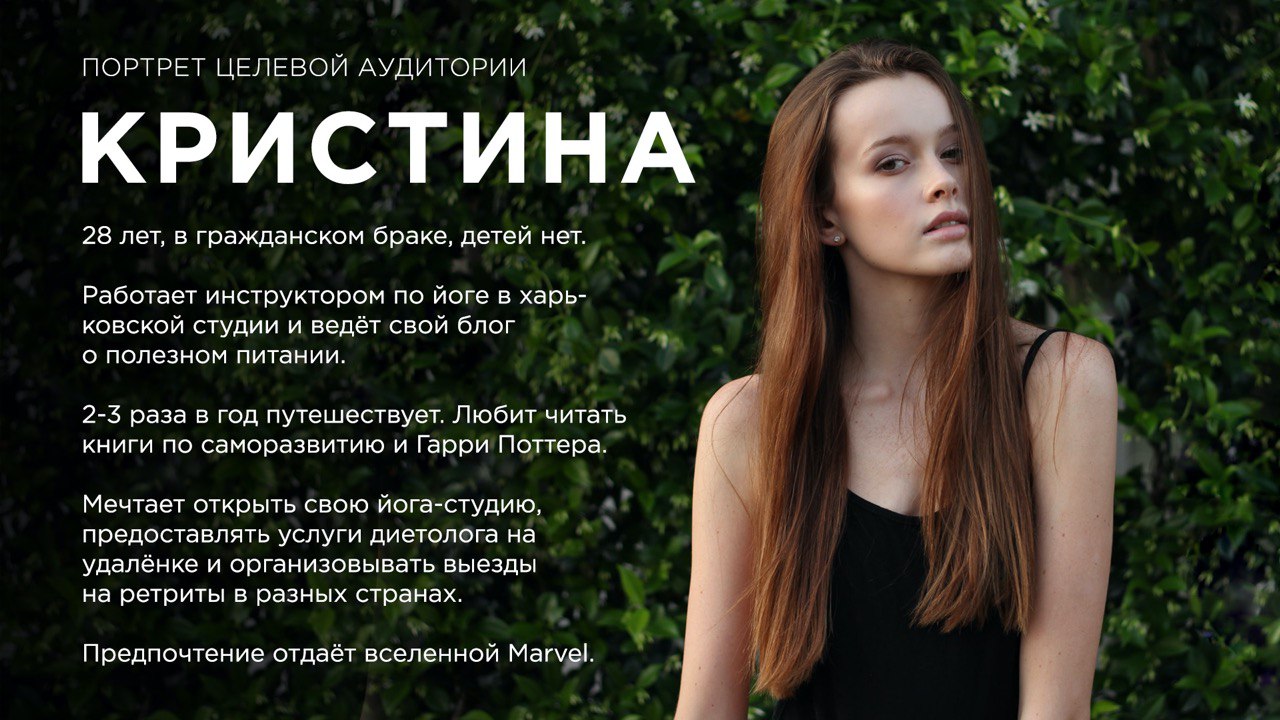 Частенько нам приходится в своих презентациях говорить о целевой аудитории. И частенько это выглядит примерно так, например: женщины, 25+, город-миллионник, доход средний+, не замужем, занимается спортом, путешествует, интересуется трендами, любит читать и ходить в кино etc.