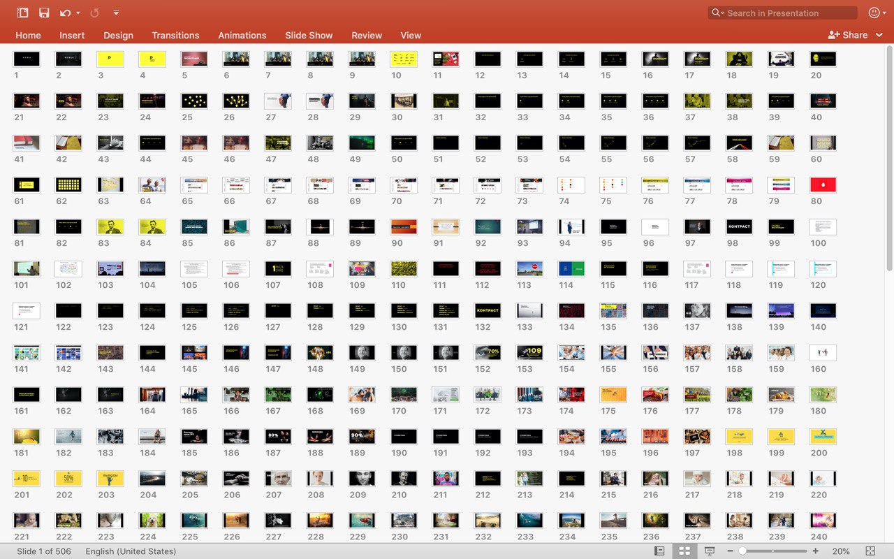 Последние несколько дней помогал с презентацией для стратсессии одному ну очень известному бренду (чёртов NDA). Презентация состояла из 236 слайдов и рассчитана на 4 часа. В работе над общим документом одновременно участвовало от 4 до 10 специалистов. Сроки были очень сжатые — 3 дня. Для того, чтобы эффективно сработать и успеть, я предложил подход с навигацией и обозначениями для слайдов. Я уже несколько раз им пользовался, но после этого кейса смело могу говорить о его жизнеспособности, эффективности и спешу поделиться с вами.